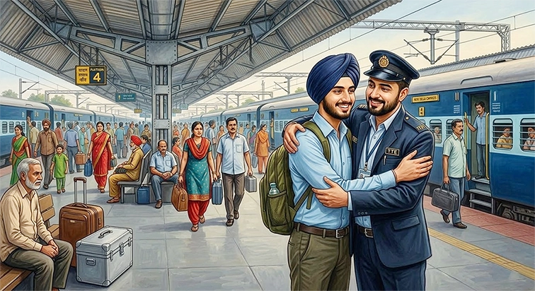 ਜਿਵੇਂ ਹੀ ਗੱਡੀ ਅੰਬਾਲਾ ਸਟੇਸ਼ਨ ’ਤੇ ਰੁਕੀ, ਅਬਦੁਲ ਲਤੀਫ਼ ਹੋਰਾਂ ਨੇ ਆਪਣੀ ਡਿਊਟੀ ਨਿਭਾਉਂਦਿਆਂ ਰਿਜ਼ਰਵੇਸ਼ਨ ਚਾਰਟ ’ਤੇ ਨਜ਼ਰ ਮਾਰੀ। ਕਿਸੇ ਮੁਸਾਫ਼ਰ ਦੇ ਨਾ ਪਹੁੰਚਣ ਕਾਰਨ ਖ਼ਾਲੀ ਹੋਈ ਇੱਕ ਬਰਥ ਉਨ੍ਹਾਂ ਨੇ ਤੁਰੰਤ ਮੇਰੇ ਨਾਮ ਅਲਾਟ ਕਰ ਦਿੱਤੀ। ਬਾਕਾਇਦਾ ਰਸੀਦ ਕੱਟ ਕੇ ਮੇਰੇ ਹੱਥ ਫੜਾਉਂਦਿਆਂ ਉਹ ਬੜੇ ਹੀ ਅਪਣੱਤ ਭਰੇ ਅੰਦਾਜ਼ ਵਿੱਚ ਬੋਲੇ, “ਲੀਜੀਏ ਸਰਦਾਰ ਜੀ, ਅਬ ਆਪ ਬੇਫ਼ਿਕਰੀ ਸੇ ਆਪਣੀ ਮੰਜ਼ਿਲ ਤੱਕ ਕਾ ਸਫ਼ਰ ਤੈਅ ਕੀਜੀਏ।” ਕਾਇਦੇ ਅਨੁਸਾਰ ਉਸ ਸੀਟ ਦਾ ਹੱਕ ਮਿਲਦਿਆਂ ਹੀ ਮੇਰਾ ਸਾਰਾ ਡਰ ਜਾਂਦਾ ਰਿਹਾ ਅਤੇ ਮਨ ਪੂਰੀ ਤਰ੍ਹਾਂ ਅਡੋਲ ਹੋ ਗਿਆ। ਹੁਣ ਮੈਂ ਸਰਕਾਰੀ ਕਾਗ਼ਜ਼ਾਂ ਵਿੱਚ ਵੀ ਓਨਾ ਹੀ ਸੁਰੱਖਿਅਤ ਮਹਿਸੂਸ ਕਰ ਰਿਹਾ ਸੀ, ਜਿੰਨਾ ਰੂਹਾਨੀ ਤੌਰ ’ਤੇ ਉਨ੍ਹਾਂ ਦੀ ਸੰਗਤ ਵਿੱਚ।